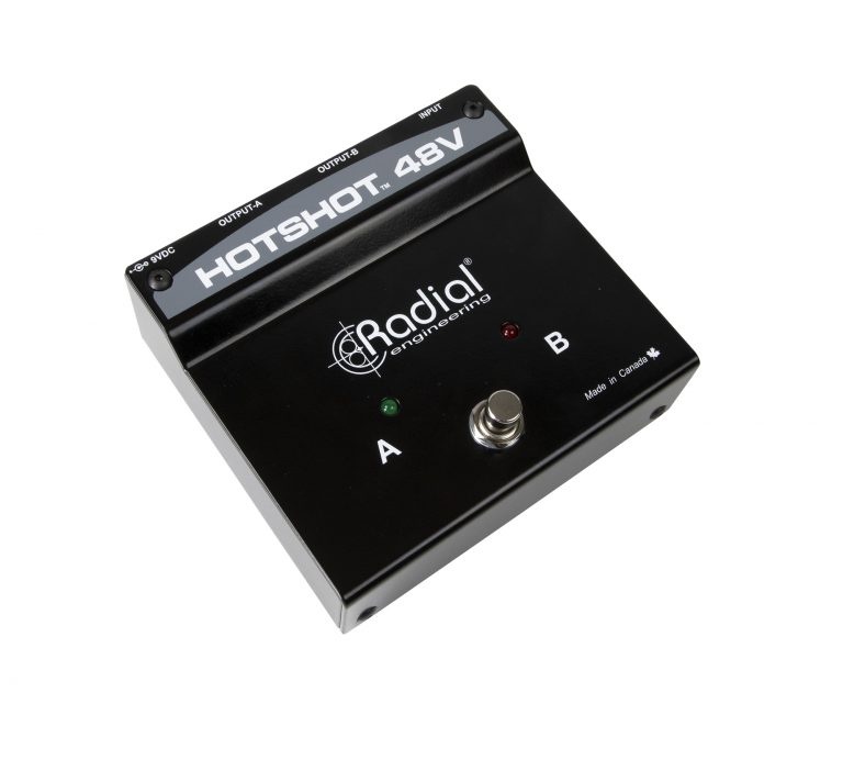 LED indicators display the active output, and the footswitch itself can be configured for latching or momentary action. While the HotShot 48V is specifically designed to address issues when switching condenser microphone outputs, it works equally well with dynamic mics also.