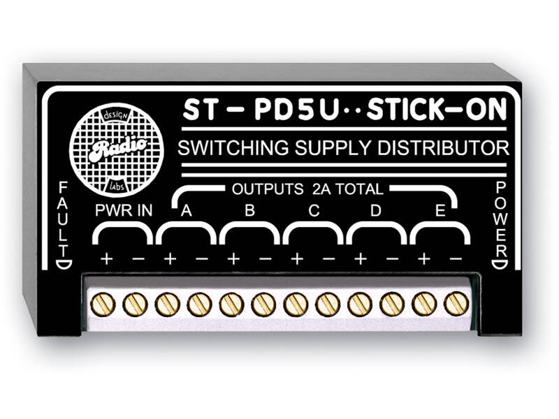 Wherever power distribution from a switching power supply is needed, the ST-PD5U is the ideal choice. Use the ST-PD5U combined with other RDL RACK-UP®, STICK-ON®, Flat-Pak™ or TX™ series products as part of a complete audio/video system.