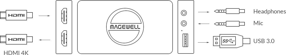 *Please use the included Magewell USB 3.0 cable, which is a custom accessory. Using any other similar cable might cause capture problems and even damage the capture device.