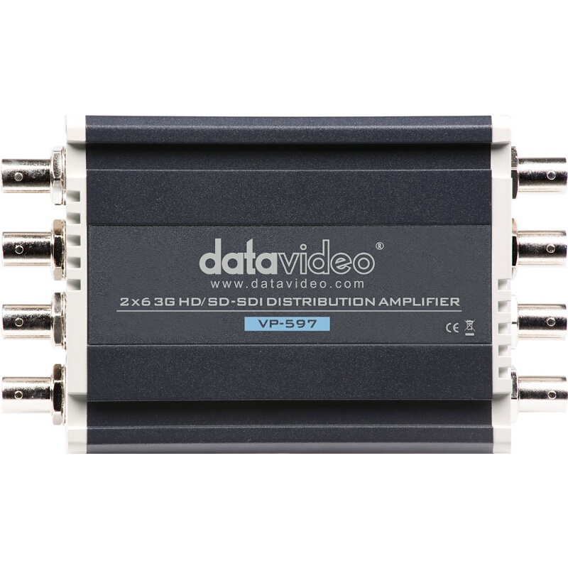 Datavideo VP-597 is a six output SDI distribution amplifier with A/B inputs switching control. It supports 3G/HD/SD SDI video with embedded audio and re-clock design for long distance transmission. Two source inputs can be controlled by an A/B panel switch or thru GPI remote control interface. VP-597 is ideal for simple A/B source switching to multiple HD displays or it can be used as a backup 3G/HD/SD SDI input sources switcher for live events.