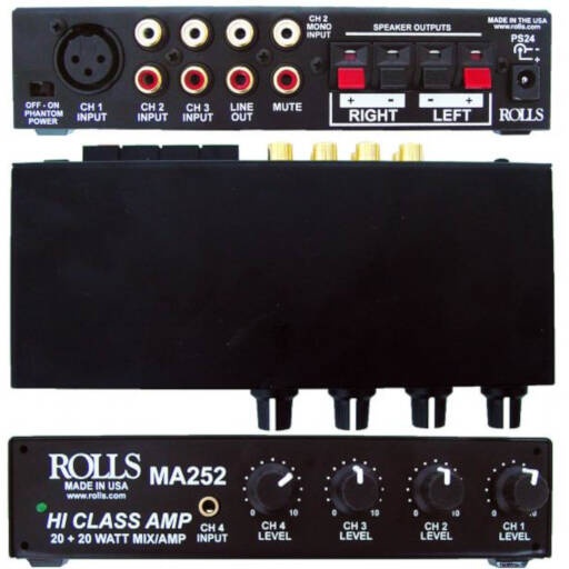 Rolls MA252 Compact Class D Stereo Amplifier x1Line Input Impedance: 10K Ohms Line, 600 Ohms Mic.
