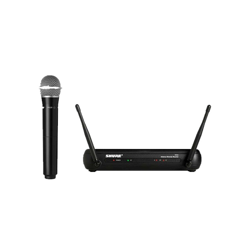 Includes SVX4 Diversity Receiver, and SVX2 Handheld Microphone Transmitter with PG28 Microphone.