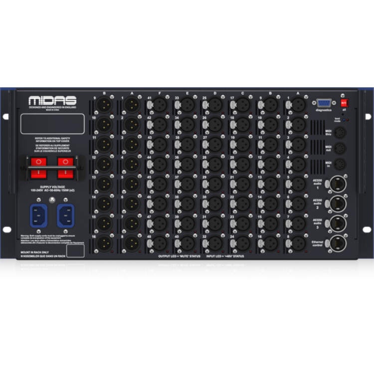 DL251 supports multiple sample rates for the AES50 connections - 96 kHz for use with MIDAS PRO Series, and 48 kHz for use with MIDAS M32 Series.Remote Console or Front Panel Control