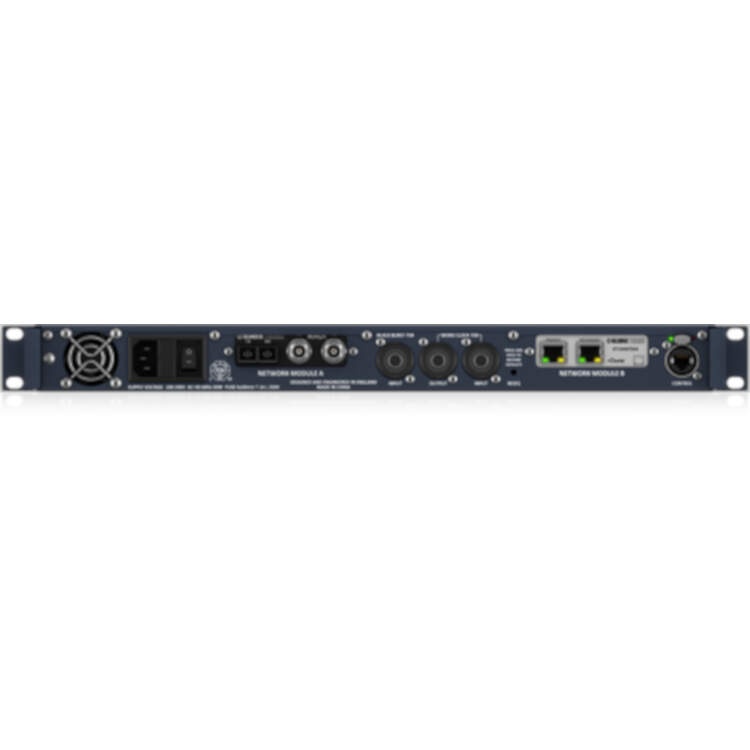 DN9652 provides a multichannel interface between two third party digital audio networks and point-to-point interfaces. The third party interfaces operate in separate clock domains and are connected by a bidirectional asynchronous sample rate converter (ASRC). This unique KLARK TEKNIK technology allows the interfacing of up to 64 bidirectional channels between the two independently clocked domains, which can also operate at different sample rates. Currently supporting MADI and Audinate Dante via the KLARK TEKNIK KT-MADI And KT-DANTE64 network modules, DN9652 is future-proofed in the evolving world of digital audio networking technology by being able to support new and emerging protocols via its industry-standard expansion slot, which is compatible with the Cirrus CM-1 format.Asynchronous Sample Rate Converter