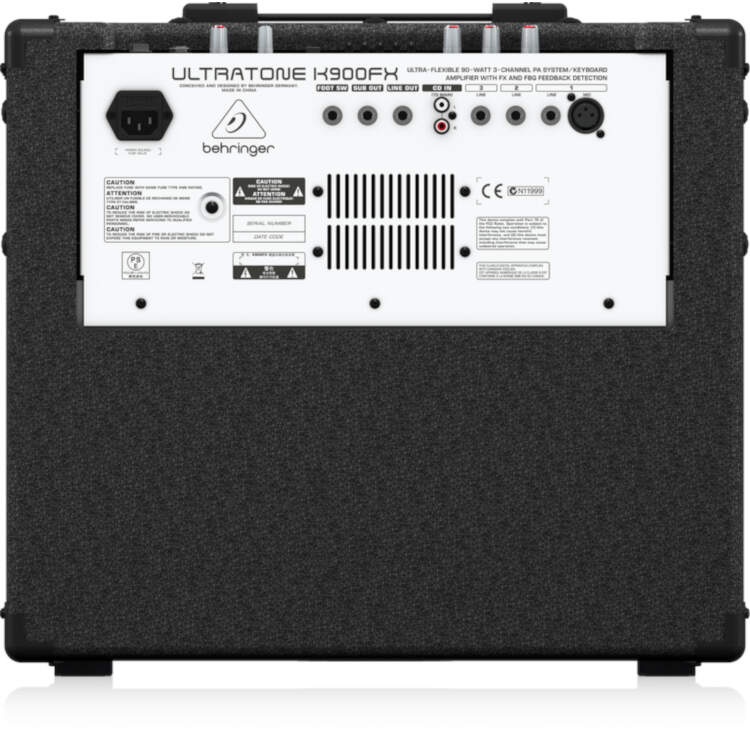 The 90-Watt ULTRATONE K900FX excels as an extraordinarily-versatile keyboard and drum amplifier, as well as a high-quality 3-channel Public Address (PA) system, with a world class, 12" BUGERA Speaker – all in one compact and easy-to-transport package. Specializing in rich, accurate tone and professional features, such as a studio-grade Multi-FX Processor and our own FBQ Feedback Detection System, this powerful workhorse will bring out the best in your performance gig after gig.