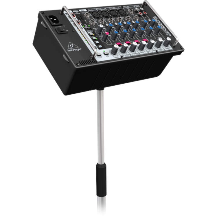 One of the coolest features of the PMP500MP3 system is its embedded mp3 player. Just plug in your favorite playlist (via USB stick) and use the 4-button pad with its Random, Play/Pause, Rewind and Forward control switches. From break and background music to high resolution karaoke performance tracks, this mp3 player can handle it all.In the BoxBehringer Europower PMP500MP3 500W 8-Channel Powered MixerPower CordMic Stand Adapter