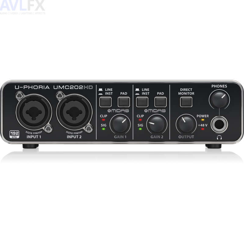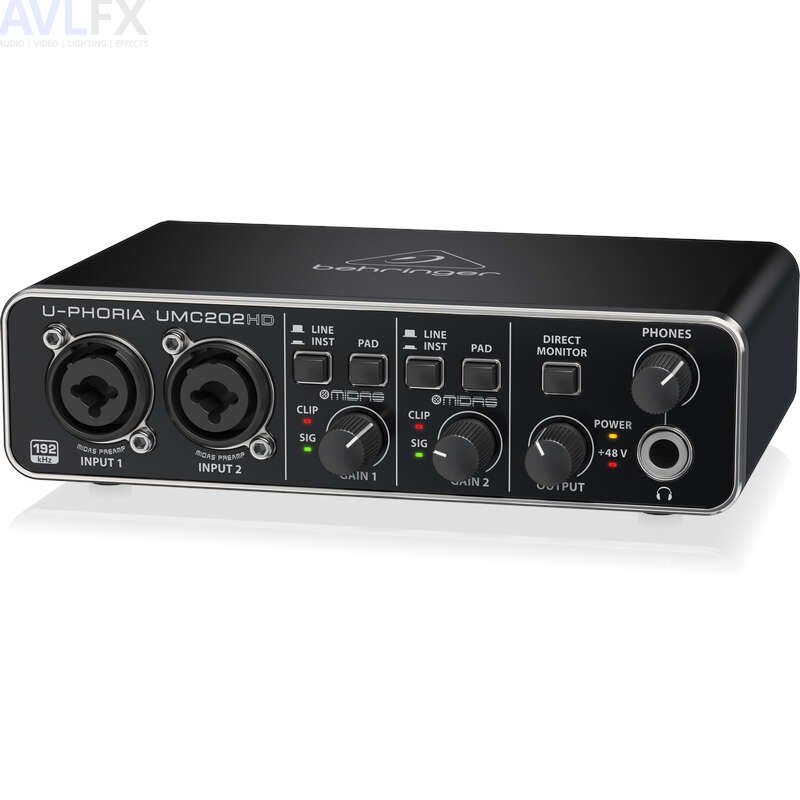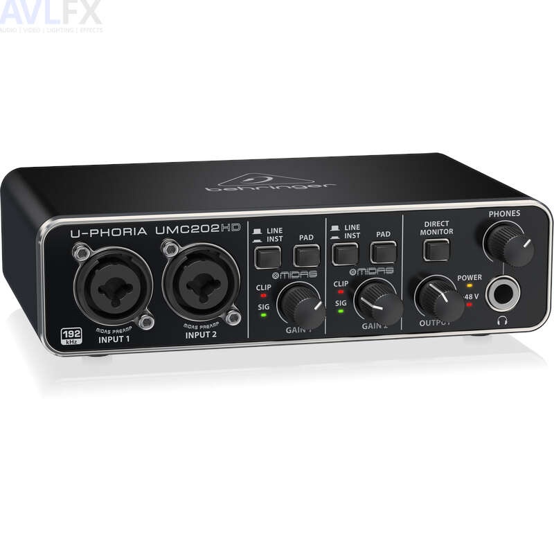 The U-PHORIA UMC202HD is a powerful 2 input, 2 output USB recording interface featuring genuine Midas-designed mic preamps with exceptional 24-Bit/192 kHz high-resolution converters, designed to help your recordings and mixes sound their absolute best.