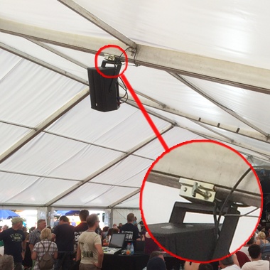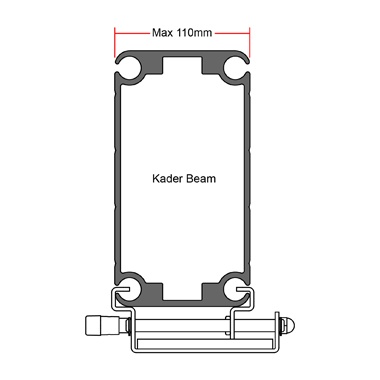 The Marquee Clamp is a brace designed specifically for tent construction with a maximum load capacity of 150 kg (SWL). The anchoring bars can be easily adjusted to the width of the carrier using the adjusting screw.