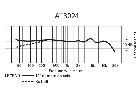 The AT8024 camera-mount microphone also comes equipped with a three-position adjustable attenuator (-20 dB, -10 dB, 0 dB) to capture even soft and very loud sound passages without distortion. A switchable low-frequency roll-off reduces pickup of undesired ambient noise, room reverberation and mechanically coupled vibrations. The microphone is powered by a single AA battery for optimal performance with high max SPL, and features an integral camera shoe mount that attaches quickly to DSLRs and shoe-equipped camcorders.