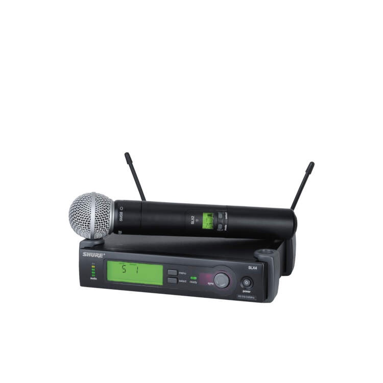 SLX® Wireless Systems are powerful wireless tools that can be set up quickly and used confidently by installers and working bands. Features include auto frequency scan with transmitter setup, exceptional wireless clarity, and Shure patented Audio Reference Companding.Includes SLX2/SM58, SLX4 receiver, microphone clip, rackmount kit, two 1/4 wave antennas, power supply, 2 AA batteries, protective bumpers with 8 screws, vinyl bag, and user guide.