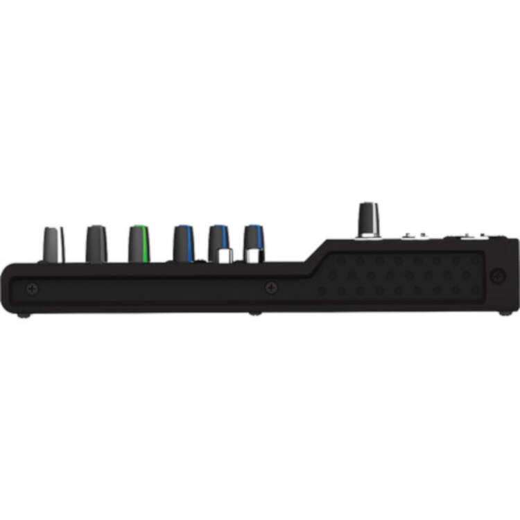 Each of the two mic/line inputs is equipped with XLR and 1/4" connectors, a dedicated 3-band EQ, aux send, pan, level control and an LED overload indicator. The two stereo 1/4" line inputs each feature an aux send, 3-band EQ, level control, balance control and also have an LED overload indicator.