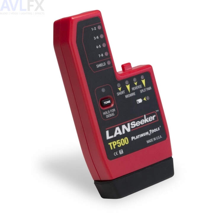 The LANSeeker™ is a fast, rugged cable tester and tone generator in one unit. It displays cable test results using LED indicators on the main and remote unit. An easy-to-use professional grade tool, the LANSeeker is a must have for residential and commercial cable installers. When the unit senses a connection between the main and remote unit, the battery-saving auto-on feature initiates test results within 2 seconds. The tester automatically powers off within 5 seconds of the cable being disconnected. LANSeeker tests for shorts, opens, miswires, reversals, and split pairs and can display connection and fault information on a pair-by-pair basis. It also generates audio tones for use with tone tracers on all pairs.