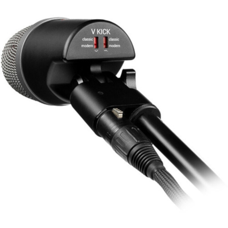 At the heart of the V Kick is its DMC7 SB capsule, which utilizes an aluminum voice coil for a transient-rich sound and a bottom end extending low enough to record the fundamental frequencies of kick drums and basses. Its supercardioid pickup pattern ensures little bleed, helping you isolate the sound-source from other drums or cymbals. The capsule is suspended inside the mic to keep it decoupled from mechanical vibration, shocks, jolts, and other issues.