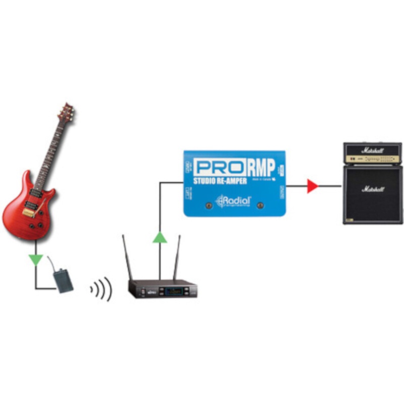The ProRMP from Radial Engineering is a passive re-amping device that allows an engineer or producer to take a pre-recorded guitar track that would typically be at line level, and output a guitar level signal that can then be sent back to an amplifier/speaker or an effects box. This opens the door to explore new musical sounds and spur on the creative process since the unit will drive a guitar amplifier as if the player was still plugged into it.