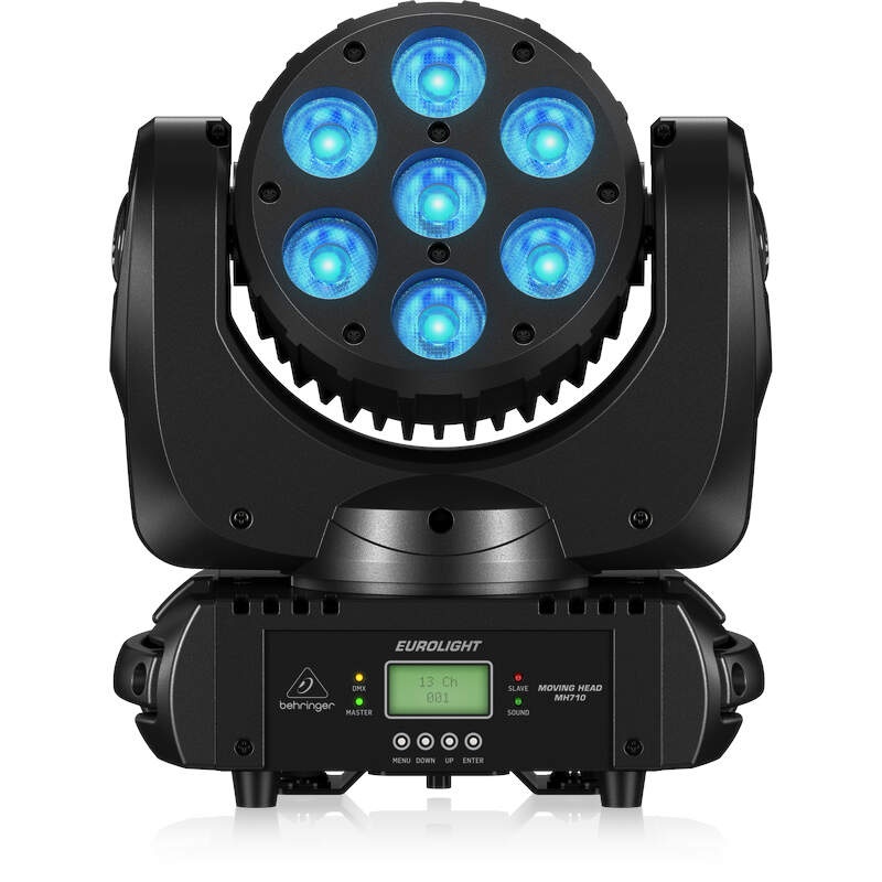 Versatility and Ease-of-Use with a finely adjustable pan of 630° and a tilt of 220° it provides extreme flexibility precise control for manual and automatic operation. EUROLIGHT MOVING HEAD MH710 can be easily operated with DMX 512 control with 13/19 preset function channels it also features a sensibility adjustable sound control, which will produce outstanding automatic effects at your music rhythm. Master/slave mode provides our exclusive blitz stage setting with 5 preset slave modes for instant easy setups.What is DMX?