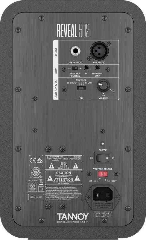 Custom tweaked by TANNOY’s in-house speaker guru, Dr. Paul Mills, the active cross-over filters of REVEAL 502 have absolutely impeccable timing.This produces the ultimate sweet spot so that you can move around in your workspace without losing the stereo imaging of your mix – as well as invite people to sit in with you during mixing sessions.