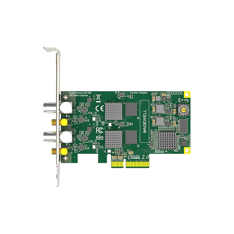 The Pro Capture Dual SDI Card from Magewell is a low-profile PCIe Gen2 x4 card that allows for capturing 2 channels of SDI input. The card supports multiple color sampling modes, 10- and 12-bit color depths, up to 8 audio channels at 48 kHz, and output resolutions up to 2048x2048 with frame rates up to 120 fps. The card is also capable of numerous video processing features, including cropping, scaling, de-interleaving, aspect ratio conversion, color format conversion, video frame rate conversion, and video OSD composition.