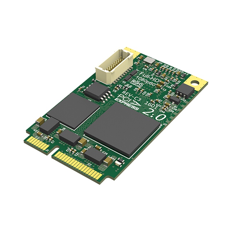 The Magewell Pro Capture Mini HDMI without Heat Sink is a mini PCIe capture card offering a single HDMI input for Windows and Linux computers. It supports the HDMI 1.4 standard and up to 1080p60 resolution and embedded audio. Instead of an integrated HDMI input, the card flexibly features a JST 20-pin input interface and includes an HDMI adapter that connects into the interface.