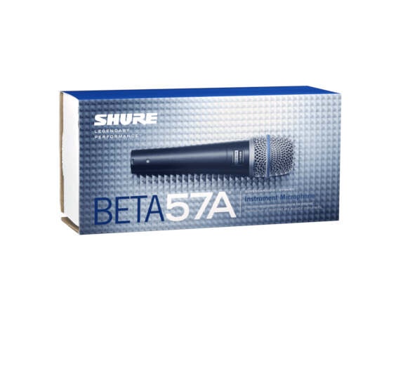 The Shure BETA®57A is a high output supercardioid dynamic microphone designed for professional sound reinforcement and project studio recording. It maintains a true supercardioid pattern throughout its frequency range. This insures high gain-before-feedback, maximum isolation from other sound sources, and minimum off-axis tone colouration.