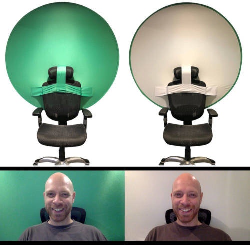 With its unique X-strap design, the Cam-A-Lot easily slides onto practically any chair and completely blocks out your background. It’s dual-sided - one side is white for a nice clean look, and the other side is green to use as a green screen on which you can project a virtual background. Notably, it uses two layers of fabric on the screen to ensure that light does not bleed through from behind the screen.