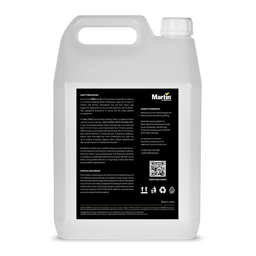 RUSH® & THRILL Haze Fluid is a specially formulated water-based haze fluid formula and is recommended for use with applicable Martin haze effect generators. It gives a fine, optically transparent airborne medium with a light-to-medium index of refraction that is ideal for highlighting beam and aerial FX projections whilst leaving little to no residue behind. RUSH & THRILL Haze Fluid is designed as an economy haze fluid that is suitable for use in nightclubs, bars, stage and outdoor events.
