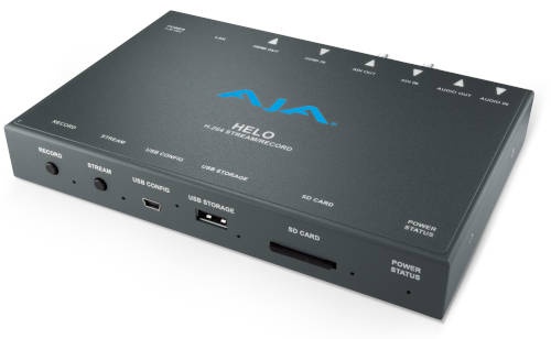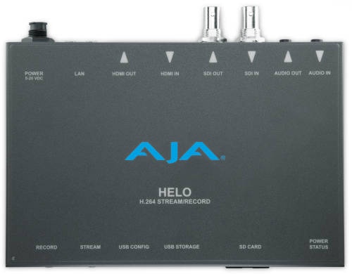 HELO is AJA’s powerful H.264 streaming and recording stand-alone appliance. HELO brings both SDI and HDMI I/O into a single appliance with the ability to simultaneously stream out to your Content Delivery Network (CDN) as well as encode and record beautiful H.264 files to either SD, SDHC, or SDXC cards, USB storage, or NFS or CIFS mounted network-based storage simultaneously.