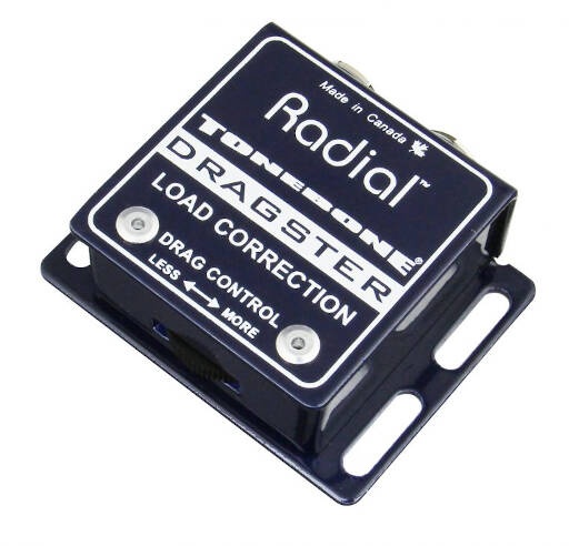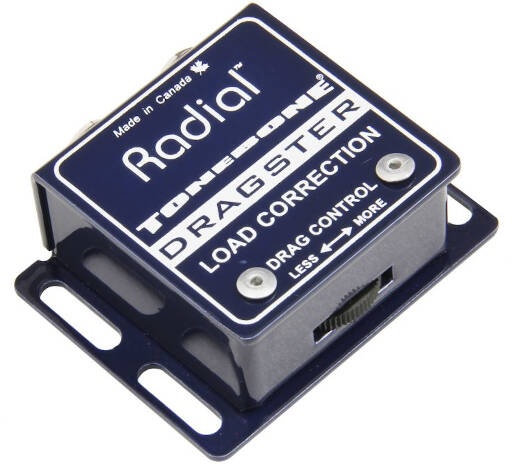 The Radial Engineering DRAGSTER is a passive, miniature impedance correction device, designed to match the high impedance of a typical electric guitar pickup with the low impedances characteristic of buffered input devices such as wireless transmitters, effects pedals and multi-effects processors, and direct recording audio interfaces.