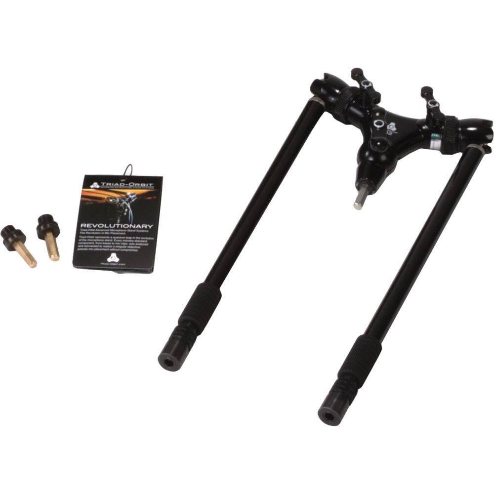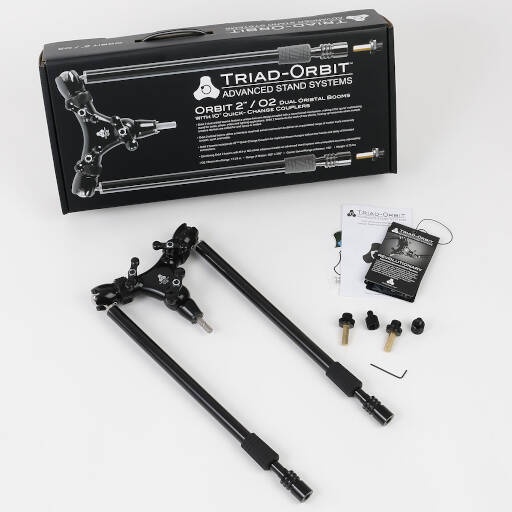 The O2 Dual-Arm Boom from Triad-Orbit features dual boom arms, great for stereo miking grand pianos, snare drum (top & bottom), body and neck of an acoustic guitar, acoustic guitar and vocals, choirs, big bands, orchestras, and more.