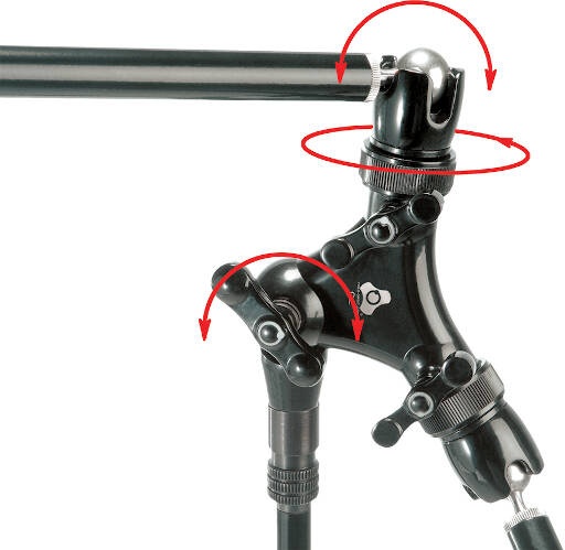 Each arm features a stainless steel ball swivel mechanism, offering a 360 x 220° range of motion. This allows for precise mic placement in a wide variety of recording applications. The booms also utilize industrial-grade clutches instead of knobs and thumbscrews to secure all points of adjustment on the shafts.