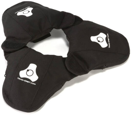 Triad-Orbit Grav Bags are unique weighted ‘shot bags’ that can be used individually (3.3 lbs) as ‘booties’ on leg ends or combined (10 lbs) as center weight to stabilize mic stands in heavy traffic areas or precarious positions.