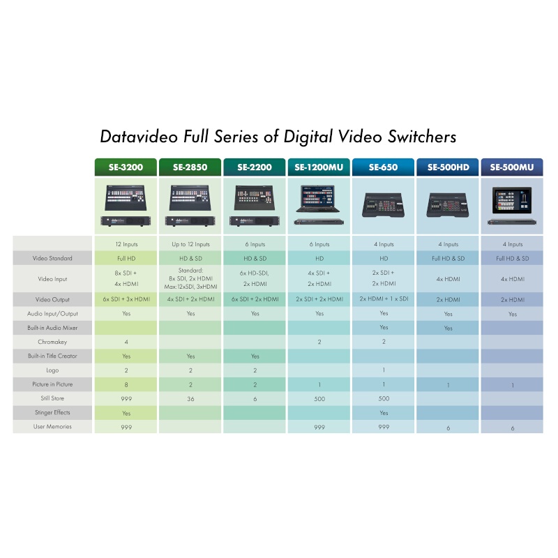 The Datavideo SE-650 is a small, costeffective, professional HD digital video switcher.