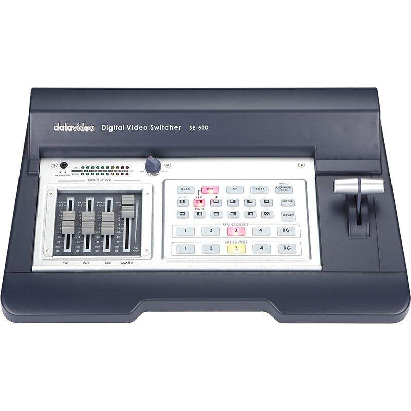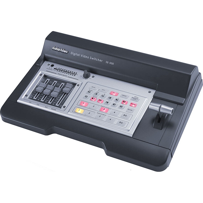 The DataVideo SE-500 NTSC defines a video switcher, integrating analog input and digital processing. It is a popular video switcher that comes with a unique feature known as Quad Preview. This is used in displaying indicators for next video effects and tally light signals. The SE-500 is compact in size and includes all the features you would need in a video switcher and available in other models that are more expensive than the SE-500. With this model, the operator can further monitor some important activities including all video transition effects; camera activities while at the same time they can be able to observe as many as four different video input sources.
