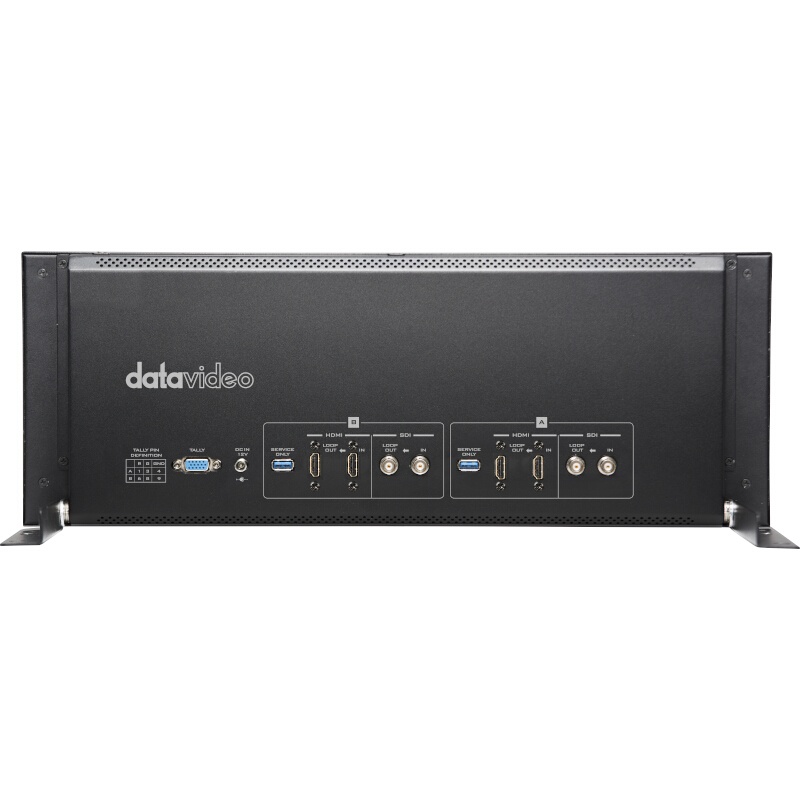 The 10" Dual IPS LCD Monitor from Datavideo is a rack-mounted monitoring unit designed for broadcast, video production, and A/V users. The monitors feature built-in vectorscope, waveform, and video signal converters. Each has one 3G/HD/SD-SDI input and one HDMI input, with loop-through output for both. Built-in signal cross conversion allows each monitor to use one input for display and the other for conversion. The 4 RU rackmount design offers a mounting solution for on-site monitoring, video walls, and production trucks.