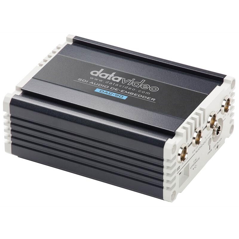 The SDI Audio De-Embedding Box from Datavideo allows the user to de-embed 16 analog audio signals (four at a time) from the SDI video signal. It features 3G/HD/SD-SDI to support up to 1080p60 video format and automatically detects and switches between different formats. In addition, 4 mini XLR audio connectors are provided to output analog audio to audio devices such as monitors, recorders, switchers, and audio mixers. SMPTE and EBU settings are available on the audio box and assignments of the de-embedded audio signal are set using the built-in DIP switches.