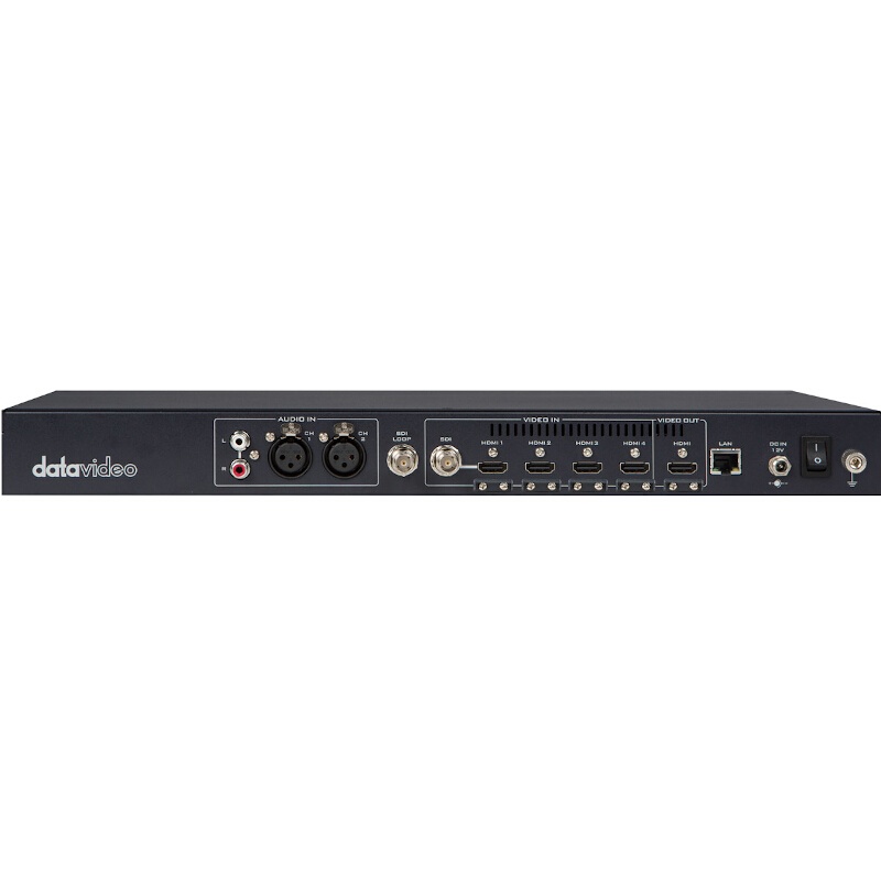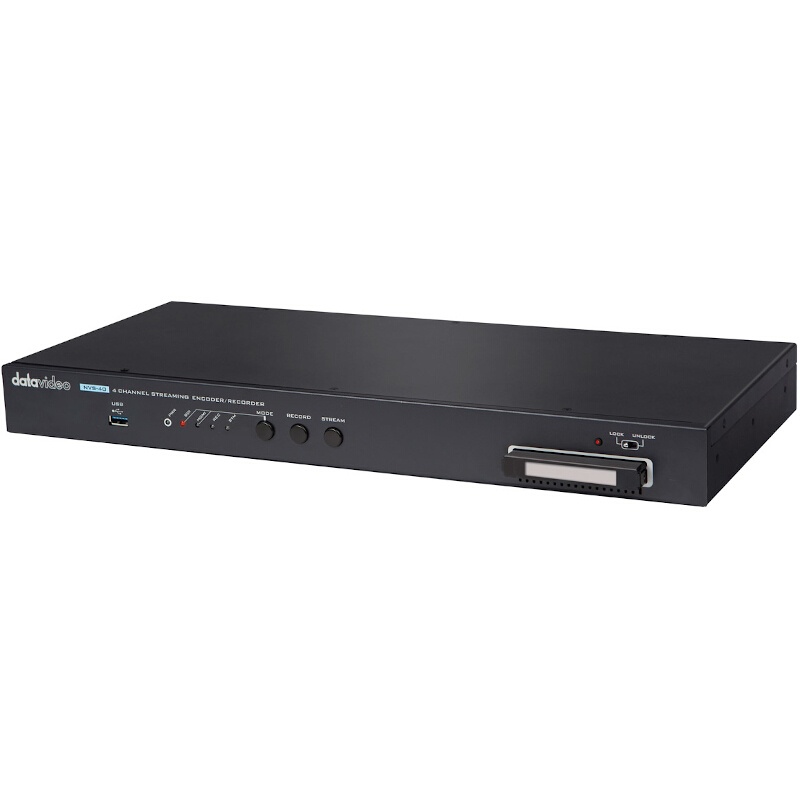The 1 RU 4-Channel Streaming Encoder and Recorder from Datavideo streams and records a variety of video resolutions by setting the encoder with various video formats and bit rates according to application and internet bandwidth limitations. The streaming encoder/recorder features one SDI and four HDMI video inputs as well as one HDMI 1.4 and one SDI video output. Resolutions up to 1920 x 1080 are supported.