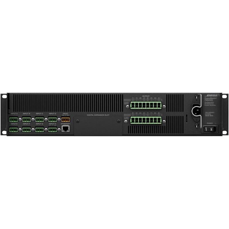 The Bose® PowerMatch PM8250N configurable professional power amplifier provides concert-quality sound with a high level of scalability and configurability for fixed installation sound reinforcement systems. Ethernet-based networking enables configuration, control and monitoring, and an expansion slot supports input from optional digital audio accessory cards. The front-panel USB connection allows for direct configuration PC connection to a single amplifier. PowerMatch amplifiers utilize numerous Bose technologies to deliver an unprecedented combination of performance, efficiency and ease of installation—all in a reliable, proprietary design.