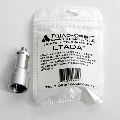 The 5/8" Female to 5/8" Male Stud Adapter from Triad-Orbit screws onto 5/8" male threads like those on a Triad IO-H2 mounting head or a microphone stand. You are then left with a 5/8" stud to mount gear, such as lights with a 5/8" receiver.