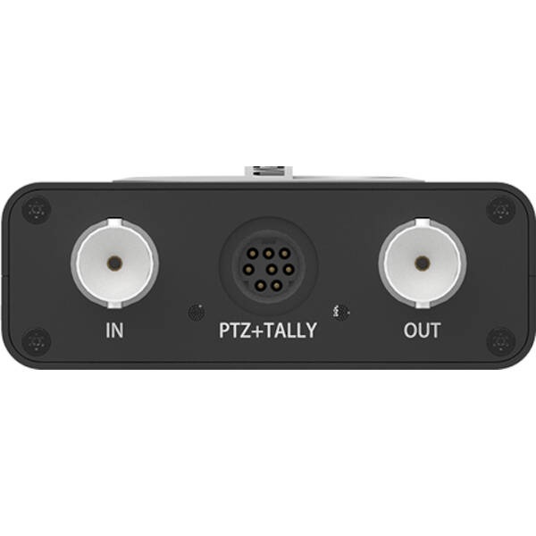 A Mini-DIN 8 breakout cable is provided for PTZ control and tally connection