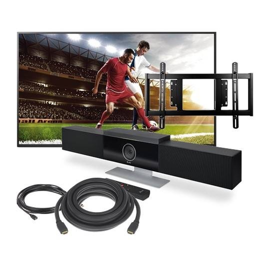 Our systems are perfectly suited to enable corporate customers, schools and government ministries to conduct virtual meetings easily. Whether it is a corporate conference call, classroom collaboration, webinar or yoga & fitness class, this bundle has everything you need from the camera, speaker, array microphone, commercial TV and includes TV bracket and video cables.