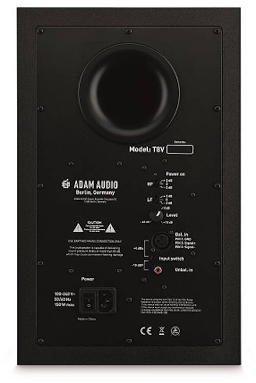 The T8V is an affordable, professional 2-way powered studio monitor with an 8˝ woofer and ADAM Audio’s latest addition to the T Series. Designed around the same technology, features and build quality as its smaller siblings, the T8V provides best-in-class characteristics and sound performance.The T8V impresses with a multitude of features that bring real benefits to the user: The U-ART tweeter’s 4:1 velocity transfer ratio, in combination with the new Class D amplifiers’ high dynamic range, yield respective max. peak SPL of 118 dB per pair. The tweeter, which extends up to 25 kHz, works as a team with the HPS Waveguide. This allows an optimal radiation of the high frequencies, which means the advantage of a more controlled, larger usable sweet spot during monitoring. With a bass extension down to 33 Hz, the T8V is especially suitable for users who produce bass-heavy music.