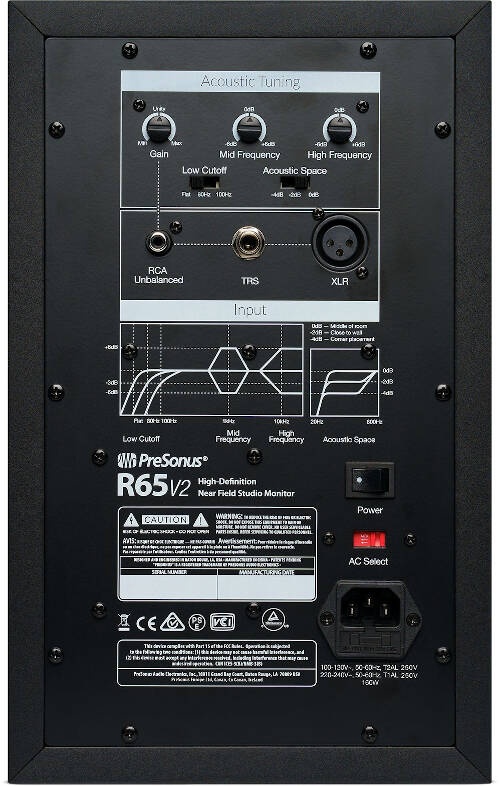 Of course, you also get classic PreSonus monitor connectivity, as R65 V2 provides balanced XLR, balanced ¼-inch TRS, and unbalanced RCA line-level inputs, so you can hook them up to an audio interface, mixer, monitor controller, or almost any other line-level source.Accuracy defined.
