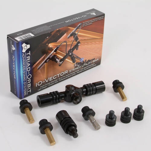 The Triad-Orbit IO-EXT2S is a 360° rotational IO connector offering 2" of additional reach and precise positioning for any equipment outfitted with Triad-Orbit IO connections. A large wing screw allows you to easily secure the position or loosen the hold for further adjustment. It includes a quick-change coupler head with a 5/8"-27 male thread and a 3/8"-16 adapter to expand its compatibility to support non-IO-equipped gear such as microphones, mic clips, and shockmounts.In the Box: