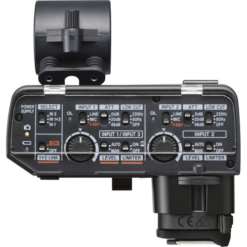 A cold shoe on the top panel expands setting flexibility. The shock mount mechanism is vibration resistant, noise-friendly and allows connection of various microphones. Two XLR/TRS input terminals and one 1/8-inch stereo mini microphone input terminals supports multiple shooting scenarios. CA-XLR2d has the flexibility that adapts to the gear necessary for the job.