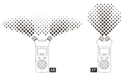 DR-07X is equipped with adjustable unidirectional microphones that can be used for recording in both the A-B position and X-Y position. Advanced microphone placing allows for a wide stereo sound recording or a clear stereo sound recording with less phase difference, making it possible to achieve professional quality recordings.A-B and X-Y stereo?