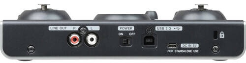 - Separate controls for line and headphone output volumes