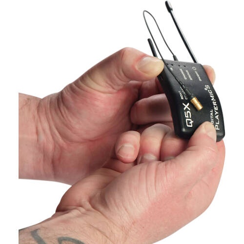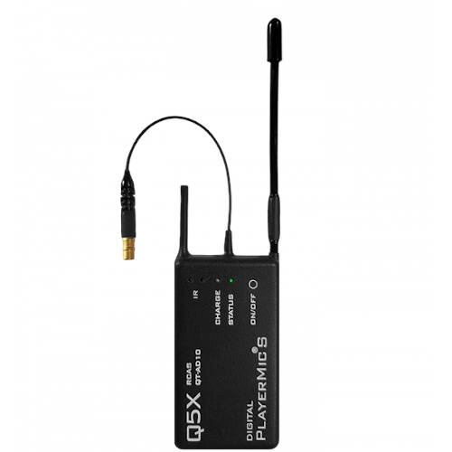The QT-AD10 Digital PlayerMic has a flexible polymer case to create the safety and ruggedness required for professional sports. The Digital PlayerMic has a run time of 8 hrs at 10mW, while the shorter Digital PlayerMic S has a run time of 4 hours at 10mW. Weighing only 2 ounces and less than a 1/2 inch thick, the Digital PlayerMic joins the Q5X family as the safest and most comfortable audio transmitter in the industry.All Analog transmitters have 2 Q5X Modes. Choose an additional Mode for Lectro UCR/SRc, Shure UR or Sennheiser HiDyn plus receiver compatibility.