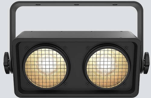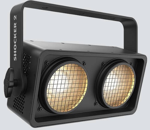 The Shocker 2 Wash Light from CHAUVET DJ is a punchy dual-zone blinder with warm white 85W COB LEDs designed for theatrical productions, concerts, and dance floors. It has an included expansion bracket which allows for quick attachment of a second unit to create a four-head blinder. Adjustable pulse width modulation (PWM) control is on board to eliminate on-camera flicker. The Shocker 2 has PowerCON-compatible power input/output connections for power linking, and flexible control options with onboard 3- and 5-pin DMX connectors.
