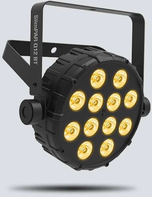 Lighting designers and mobile entertainers in need of a quality wash fixture with Bluetooth will be impressed with the CHAUVET DJ SlimPAR Q12 BT, a compact LED PAR with built-in Bluetooth wireless technology, allowing you to control the fixture from any smartphone or tablet without any additional hardware. The fixture utilizes twelve quad-color RGBA (red, green, blue, amber) 3.5W LEDs that generate a broad spectrum of colors and can achieve a natural-looking color temperature with punchy amber LEDs.