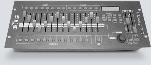 Bigger shows call for more accessibility and ease of programming. The Obey 70 bridges the gap between smaller rack mount controllers and massive control desks. 14 faders and an assignable joystick allow for easy programming of up to twelve 32-channel fixtures. The Obey 70 can store up to 6 sets of chases containing 240 scenes on 384 total channels of control. Also at your fingertips are fog and strobe control as well as MIDI compatibility.