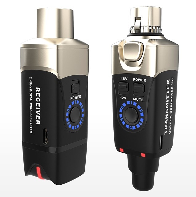 - The transmitter supplies 12V or 48V phantom power to accommodate your favorite condenser microphone, and sends uncompressed 24-bit / 48 kHz audio to the receiver up to 90' away. The internal rechargeable batteries power the U3C Set for enough time to handle an entire concert, worship service, or long-form presentation.